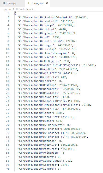 책에서는 각 기능마다 파이썬 파일을 따로 만들었다. 그러나 내 기준에서는 어쨌든 폴더 크기를 측정하는 프로그램이기 때문에 하나의 파이썬 코드에 전부 넣는 방식으로 수정했다.