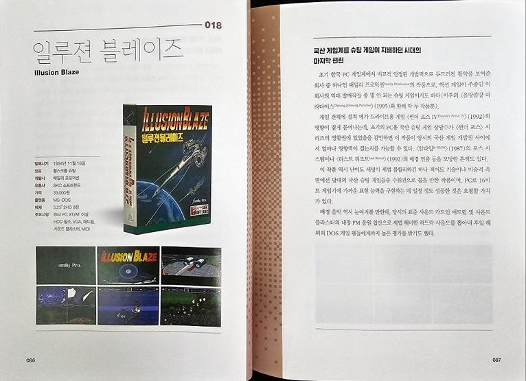 '당신이 읽고픈 책이 있는데 아무도 쓴 적이 없다면 그 책은 당신이 써야 한다.' 노벨문학상을 수상한 토니 모리슨의 말이다.이 문구는 조기현 저자 서문에 그대로 인용되어 있다. 이 책은 제목 그대로 약 1992년부터 2004년까지 한국에서 개발하고 발매된 PC 게임들을 정리하였다. 책 구성은 간단하다. 당시 나왔던 인기 게임 메인 사진과 함꼐 간단한 설명으로 구성되었다.