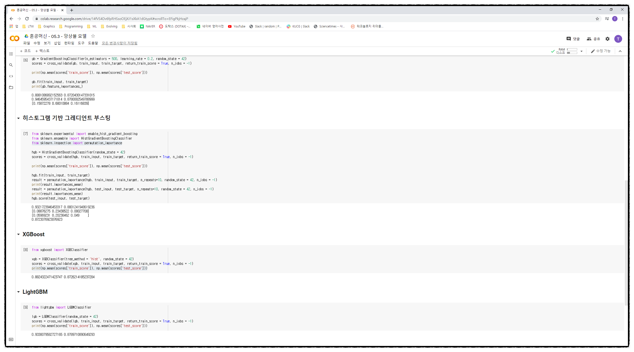 이런 알고리듬들 중 '랜덤 포레스트', '엑스트라 트리', '그레디언트 부스팅' 등이 있으나 가장 인기있는 알고리듬은 '히스토그램 기반 그레디언트 부스팅'이다.