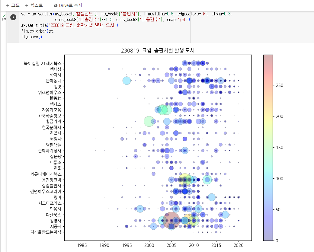 [기본 미션] p.344의 손코딩(맷플롯립의 컬러맵으로 산점도 그리기)을 코랩에서 그래프 출력하고 화면 캡쳐하기