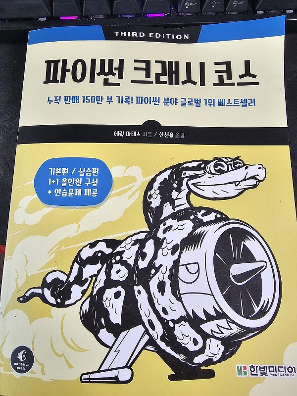 파이썬은 2023년 가장 인기있는 언어 중 하나다. 이 인기는 최소 10년간 줄어들지 않을거라 생각한다. 머신러닝이 대세인 이유도 있지만 다른 언어에 비해 사용하기 더 쉽기 때문이다. 이런 인기에 힘입어 해외에서도 파이썬 입문 책이 베스트 셀러가 된 것 같다. 누적 판매량 150만부라는 '파이썬 크래시 코스' 책을 받아보았다.