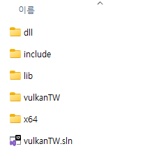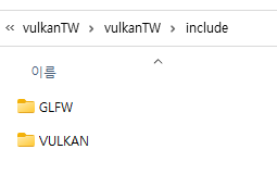 glfw와 vulkan을 구분하기 위해 lib, include 폴더 안에 각각 glfw, vulkan 폴더를 추가로 만들었습니다.