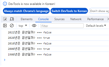 [기본 미션] p.202 <윤년을 확인하는 함수 만들기> 예제를 실행하여 2022년이 윤년인지 확인하는 결과 인증하기