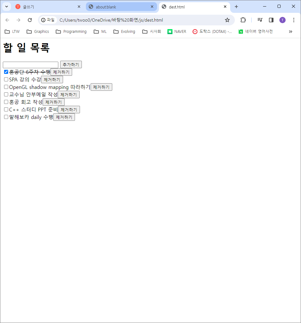 [선택 미션] p. 352 누적 예제를 활용하여 본인의 할 일 목록을 만들어 캡처하기